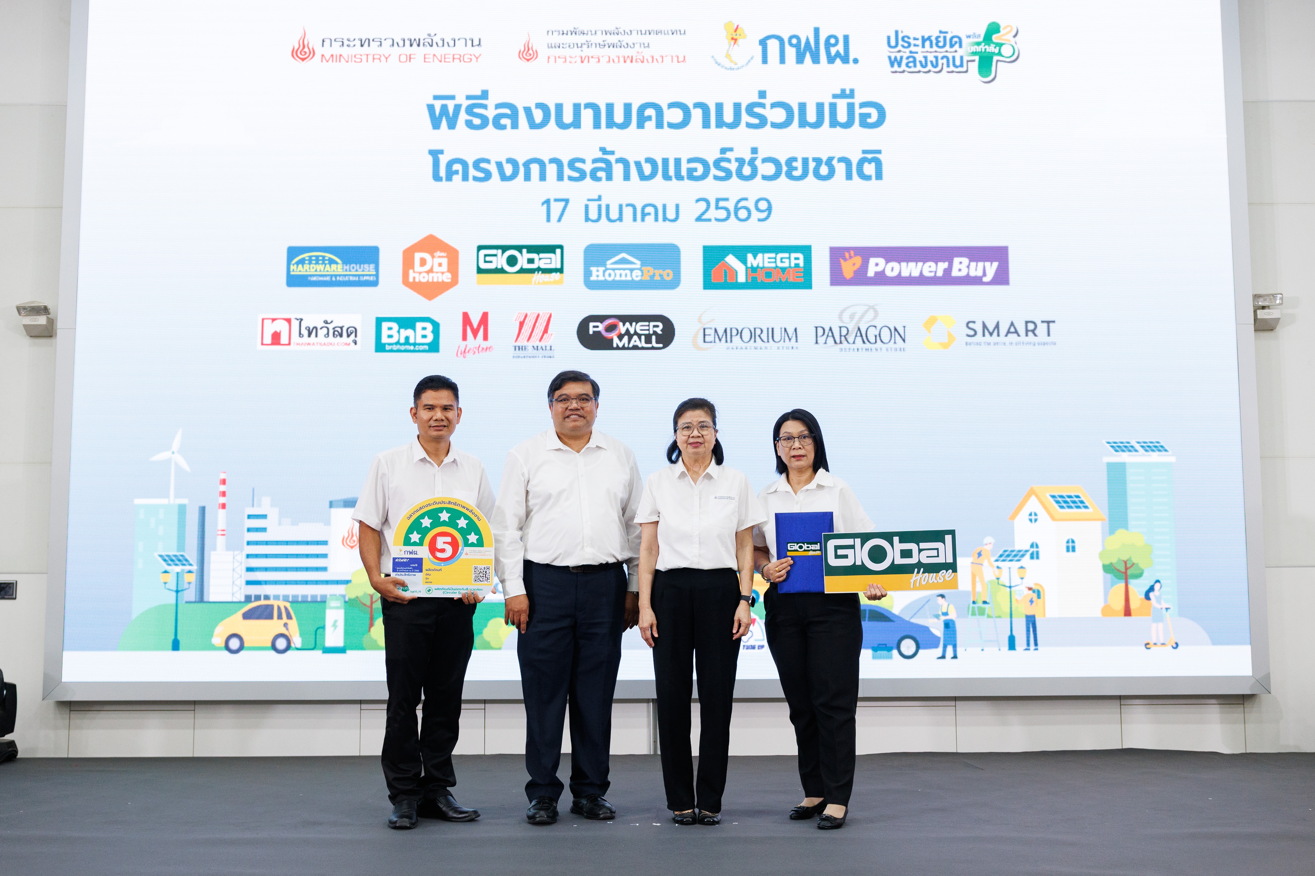 ในการนี้ บริษัท สยามโกลบอลเฮ้าส์ จำกัด (มหาชน) ได้ร่วมแสดงเจตนารมณ์ในการเป็นส่วนหนึ่งของการขับเคลื่อนมาตรการประหยัดพลังงาน โดยมุ่งเน้นการดำเนินธุรกิจอย่างมีความรับผิดชอบต่อสิ่งแวดล้อม และสนับสนุนการใช้พลังงานอย่างมีประสิทธิภาพในทุกสาขาทั่วประเทศ