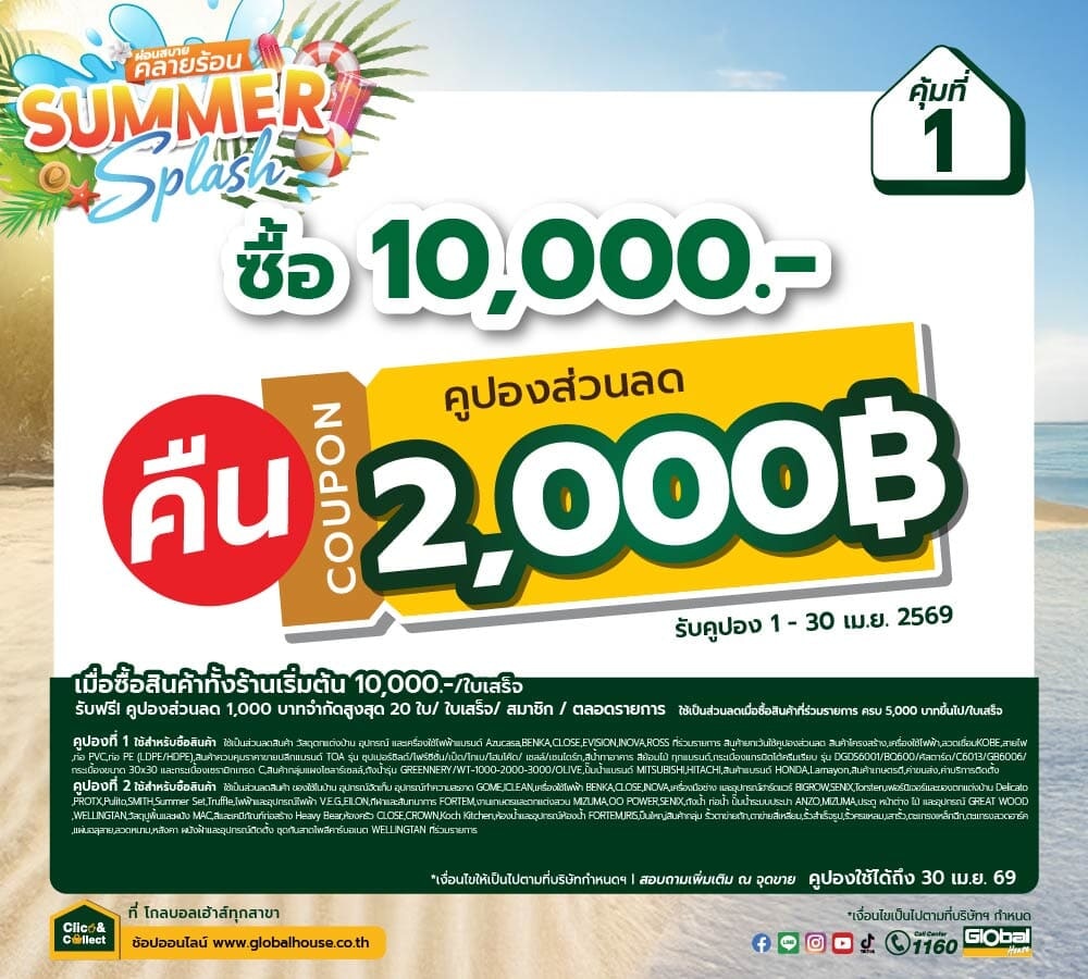 แจกคูปองจัดเต็ม! ช้อปครบ รับส่วนลดสูงสุด 20,000 บาท ที่โกลบอลเฮ้าส์