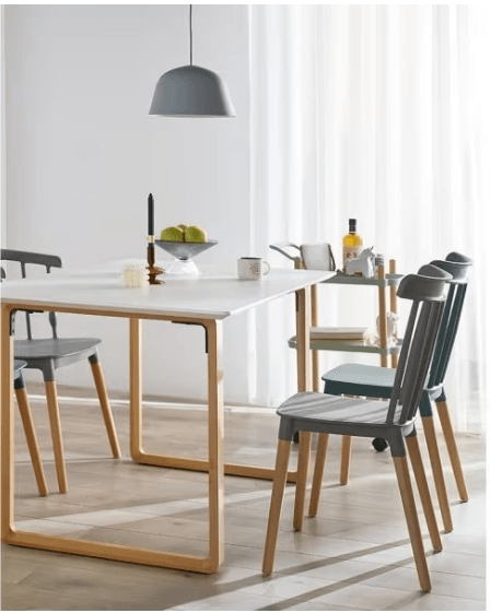 เลือกโต๊ะ: โต๊ะไม้จริงหรือโต๊ะไม้เนื้อแข็งที่เผยให้เห็นลายไม้และผิวสัมผัสที่เป็นธรรมชาติ จะเข้ากันได้ดีกับเก้าอี้ Puilto และสร้างความรู้สึกอบอุ่น
