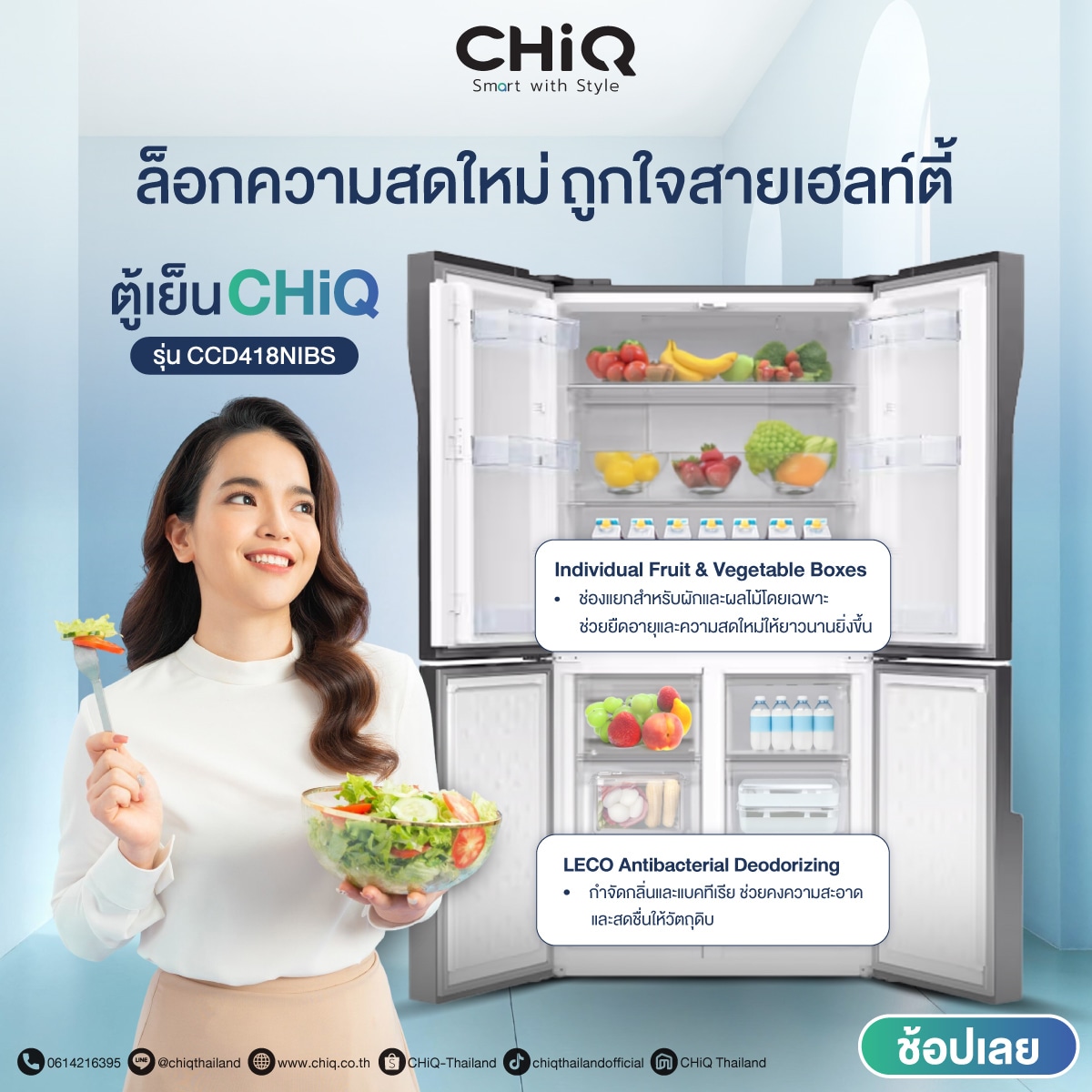CHiQ เป็นแบรนด์เครื่องใช้ไฟฟ้าคุณภาพจากออสเตรเลียที่เน้นดีไซน์สวยทันสมัย ประหยัดพลังงาน และตอบโจทย์ไลฟ์สไตล์ของคนรุ่นใหม่ โดยเฉพาะ ตู้เย็น CHiQ ที่มีให้เลือกหลายขนาดและหลายประตู ทั้งแบบ 1 ประตูและ 2 ประตู ซึ่งแต่ละแบบก็มีข้อดีแตกต่างกันไป