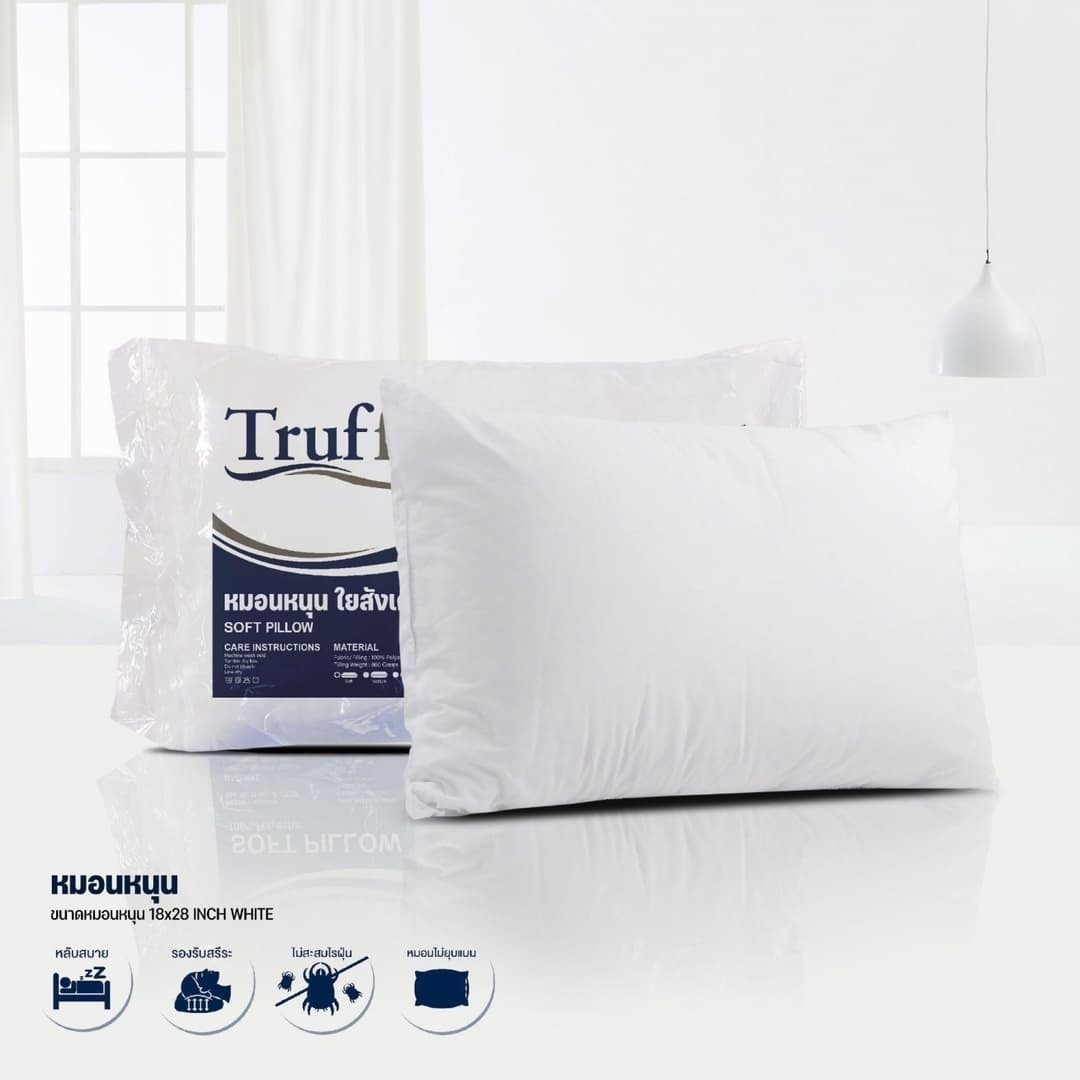 2. TRUFFLE หมอนหนุนใยสังเคราะห์ รุ่น Soft ขนาด 18x28 นิ้ว(เส้นใย 800กรัม) สีขาว
