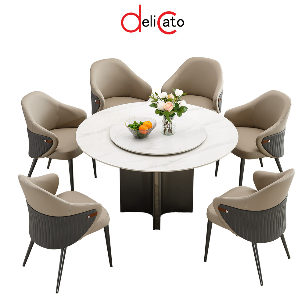 (1/6)DELICATO ชุดโต๊ะอาหารท็อปลายหินอ่อน 6 ที่นั่ง รุ่น Marblezen สีขาว