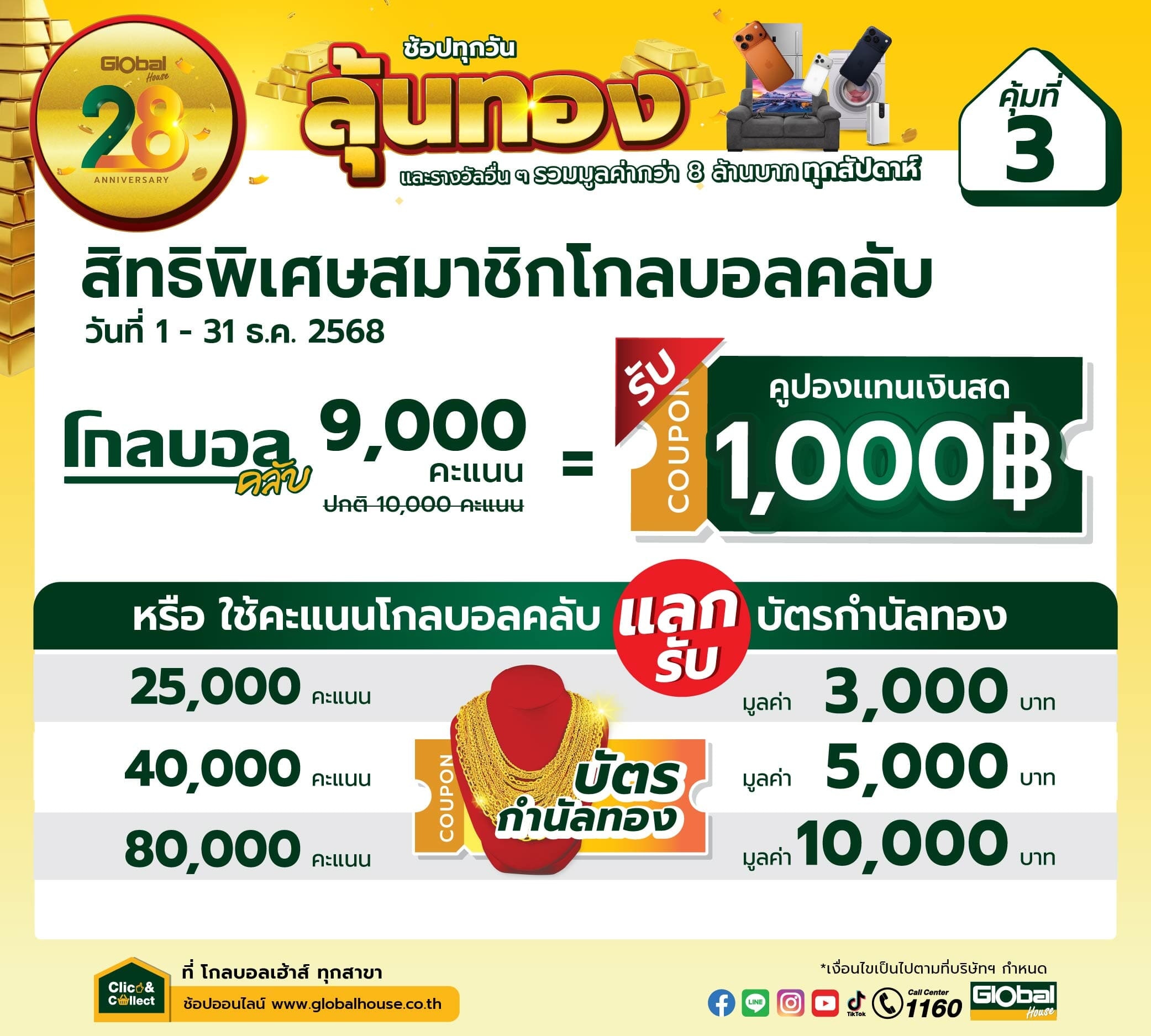 👉 แคมเปญ 28 ปี โกลบอลเฮ้าส์ ช้อปทุกวัน ลุ้นทอง ทุกสัปดาห์ ดูรายละเอียด