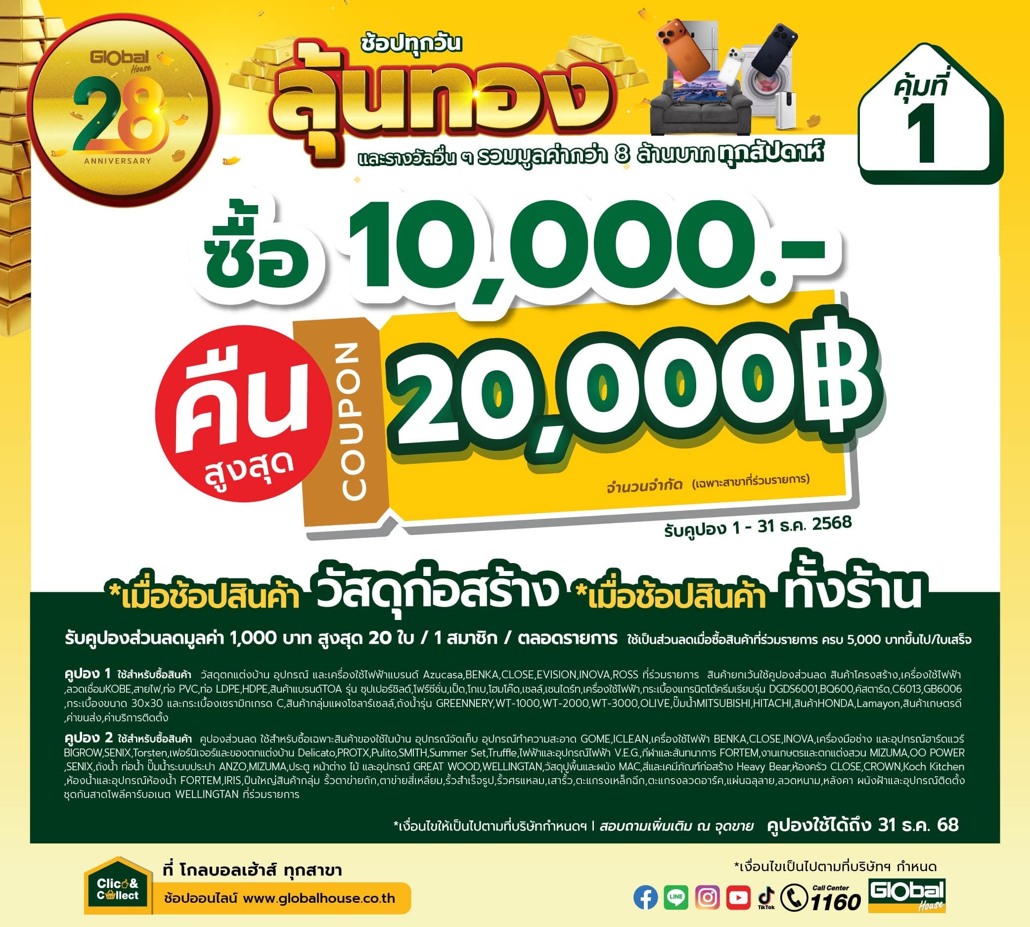 แจกคูปองจัดเต็ม! ช้อปครบ รับส่วนลดสูงสุด 20,000 บาท ที่โกลบอลเฮ้าส์