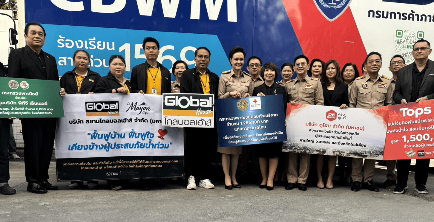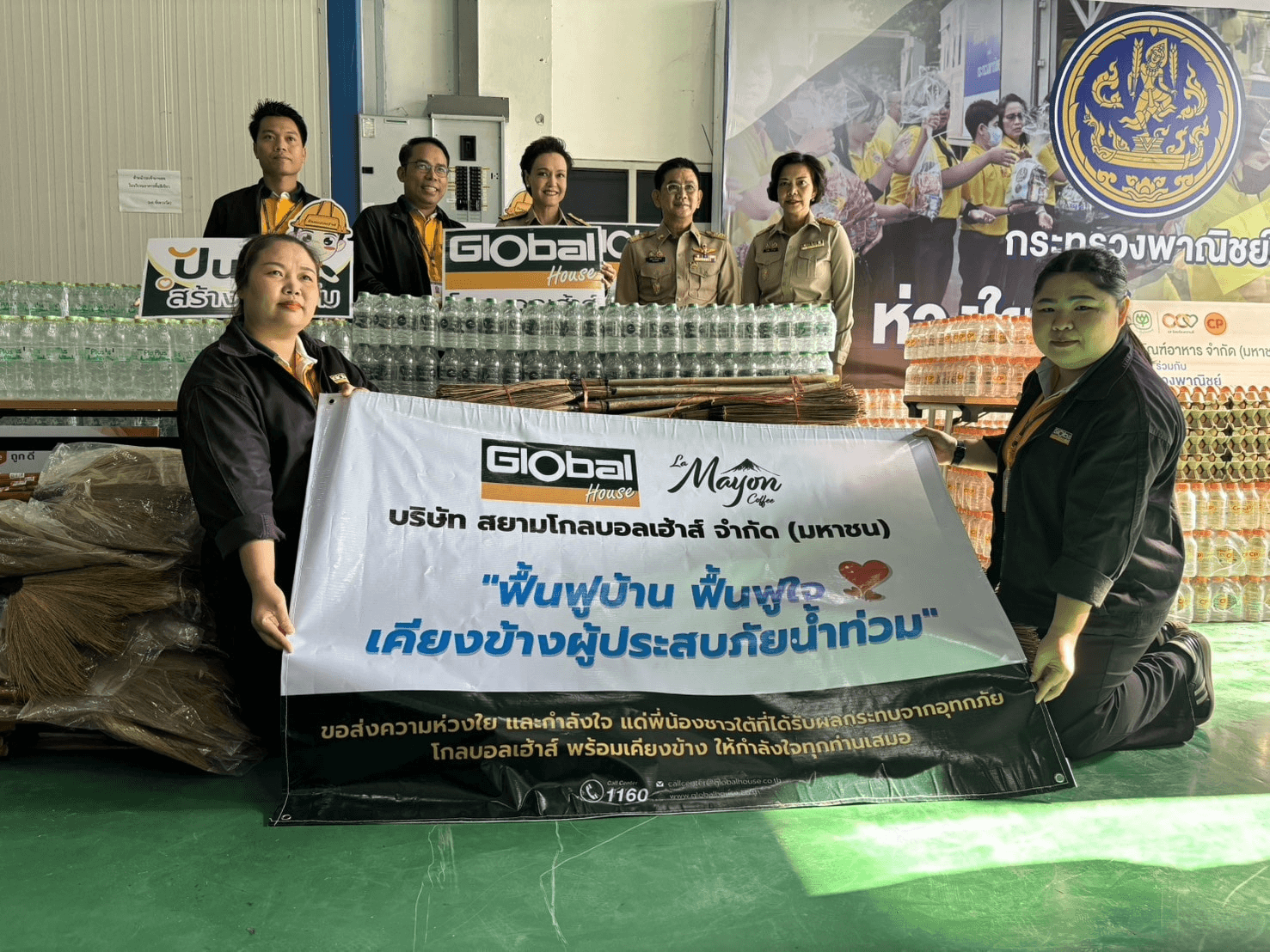 โดยมี นางศุภจี สุธรรมพันธุ์ รัฐมนตรีว่าการกระทรวงพาณิชย์ ให้เกียรติเป็นประธานในพิธี พร้อมด้วย นายสันติ เพียรกล้า ตำแหน่ง Area Manager 3-3 และพนักงานโกลบอลเฮ้าส์ ร่วมเป็นตัวแทนบริษัทฯ ในการส่งมอบสิ่งของอุปโภคและบริโภค เพื่อบรรเทาความเดือดร้อนของผู้ประสบภัย และสนับสนุนการฟื้นฟูในพื้นที่ภาคใต้ที่ได้รับผลกระทบ