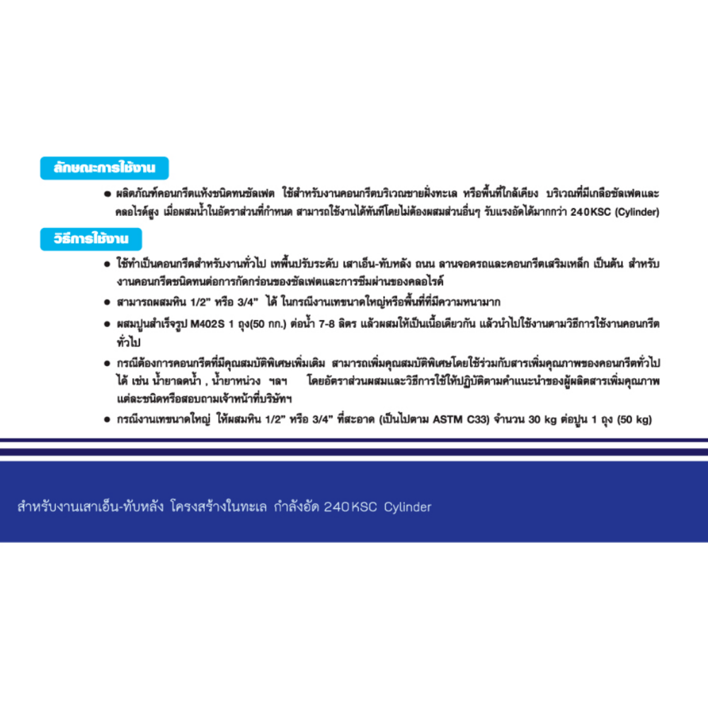 ผลิตภัณฑ์ : ปูนสำเร็จรูปคอนกรีตแห้งมารีนทนซัลเฟต_M402S