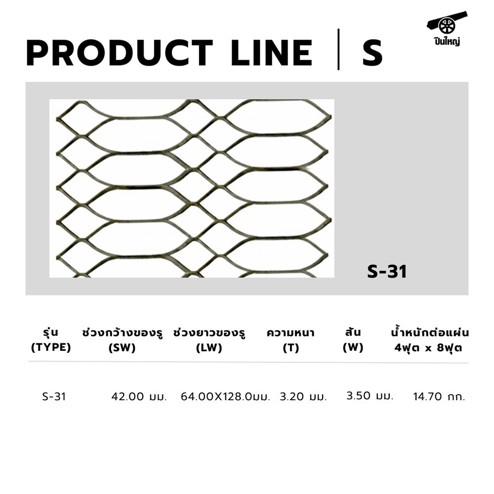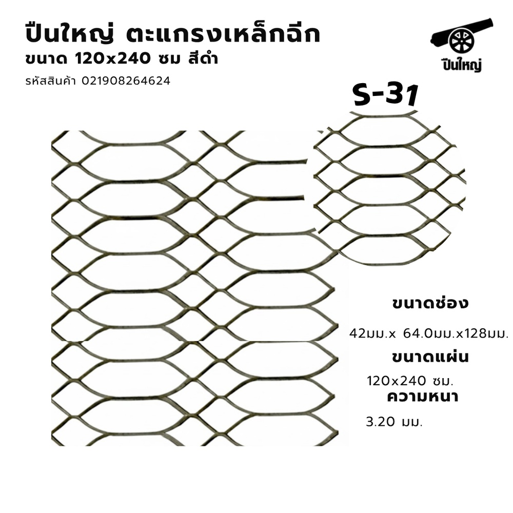 ปืนใหญ่ รุ่น S-31 เป็นตะแกรงเหล็กฉีกแบบเรียบที่มีความแข็งแรงสูง เหมาะกับงานโครงสร้างและพื้นทางเดินที่ต้องการรับน้ำหนักมาก