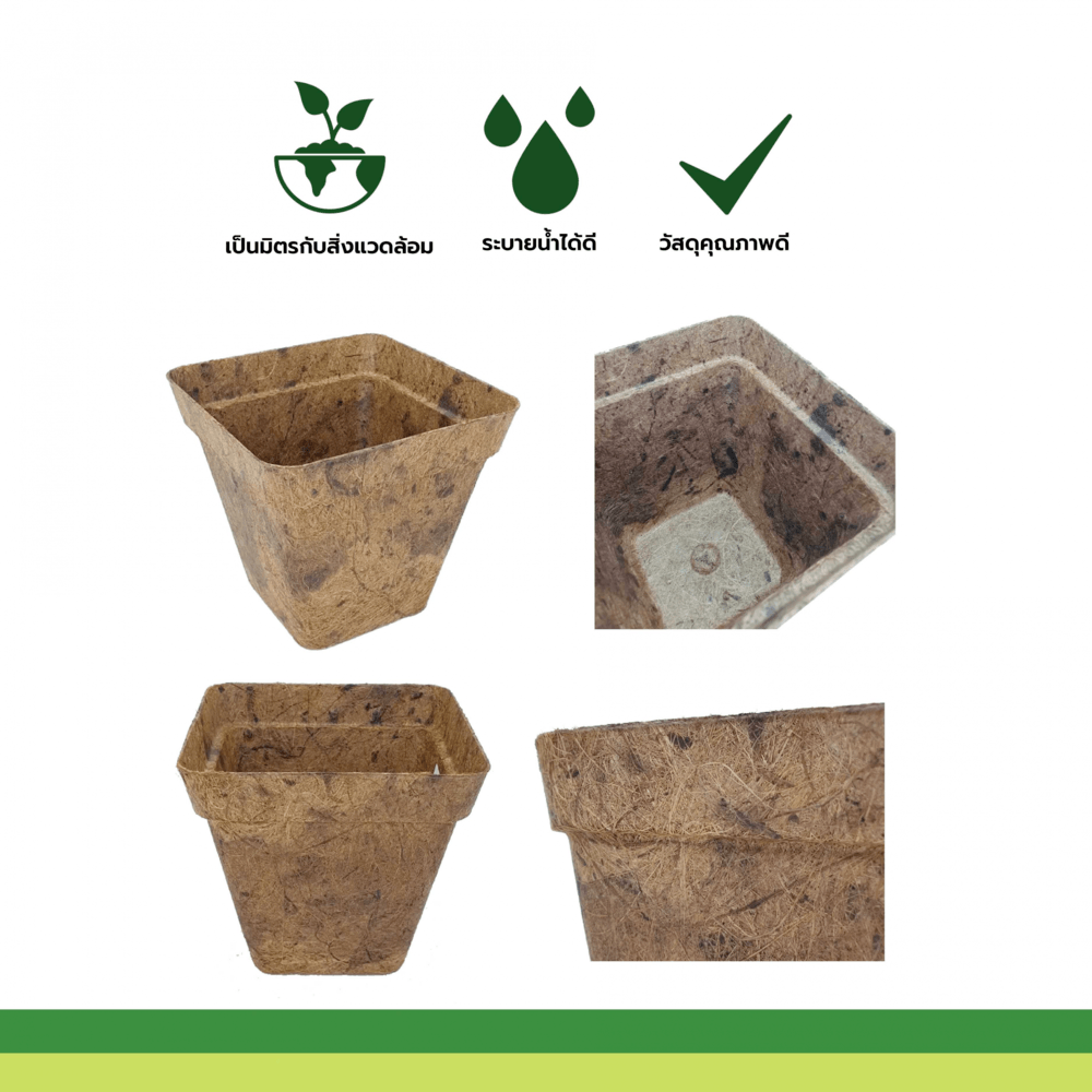 - รูปทรงสวยงาม สามารถปลูกในกระถางหรือลงดินแบบไม่ต้องนำกระถางออก ใช้แทนปุ๋ยได้ อุ้มน้ำ ระบายอากาศได้ดี ตัวกระถางมีความยืดหยุ่น น้ำหนักเบา แข็งแรง ขนส่งสะดวกกระถางใยมะพร้าวช่วยให้รากพืชได้รับการหมุนเวียนอากาศที่ดี ซึ่งเป็นปัจจัยสำคัญในการเจริญเติบโตของรากพืชและการดูแลสุขภาพของราก