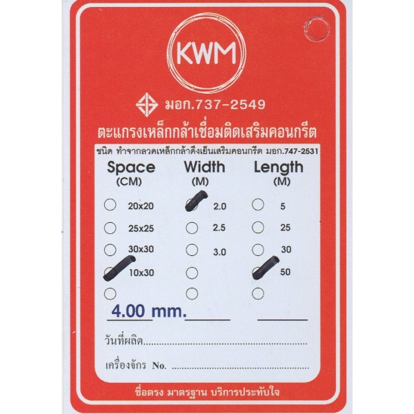 | รุ่น | 4.0 mm. 10 x 30 ขนาด 2.0 x 50 (ม้วน) |