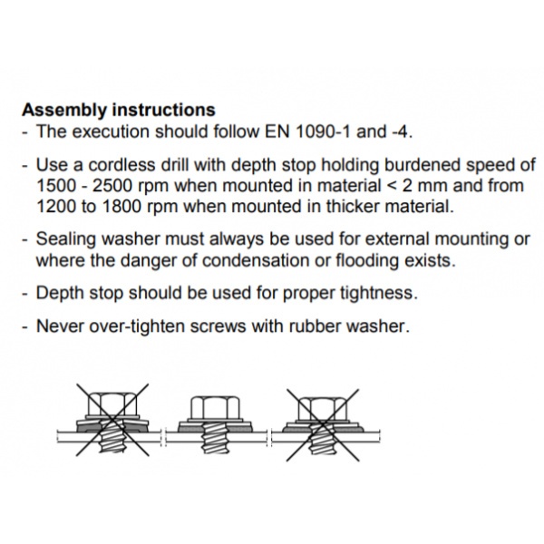 โปรดดูแรงบิดที่ปลอดภัยที่กำหนดไว้ในคู่มือนี้ซึ่งจะแสดงไว้ด้านล่าง หากต้องการใช้เครื่องมืไฟฟ้า สว่านไฟฟ้า ทางบริษัทขอแนะนำให้ใช้ที่ความเร็วรอบต่ำ ถ้าใช้ความเร็วสูงและส่งผลกระทบให้เกิดการติดขันของเกลี่ยวกระทันหัน หากเกิดการติดขัดให้ทำการตัดออก โปรดตรวจสอบก่อนการตัด และหลักเลี่ยงการส่งผลกระทบต่อพื้นผิวที่มีการชุบอโนไดซ์ หรือัลวาไนซ์