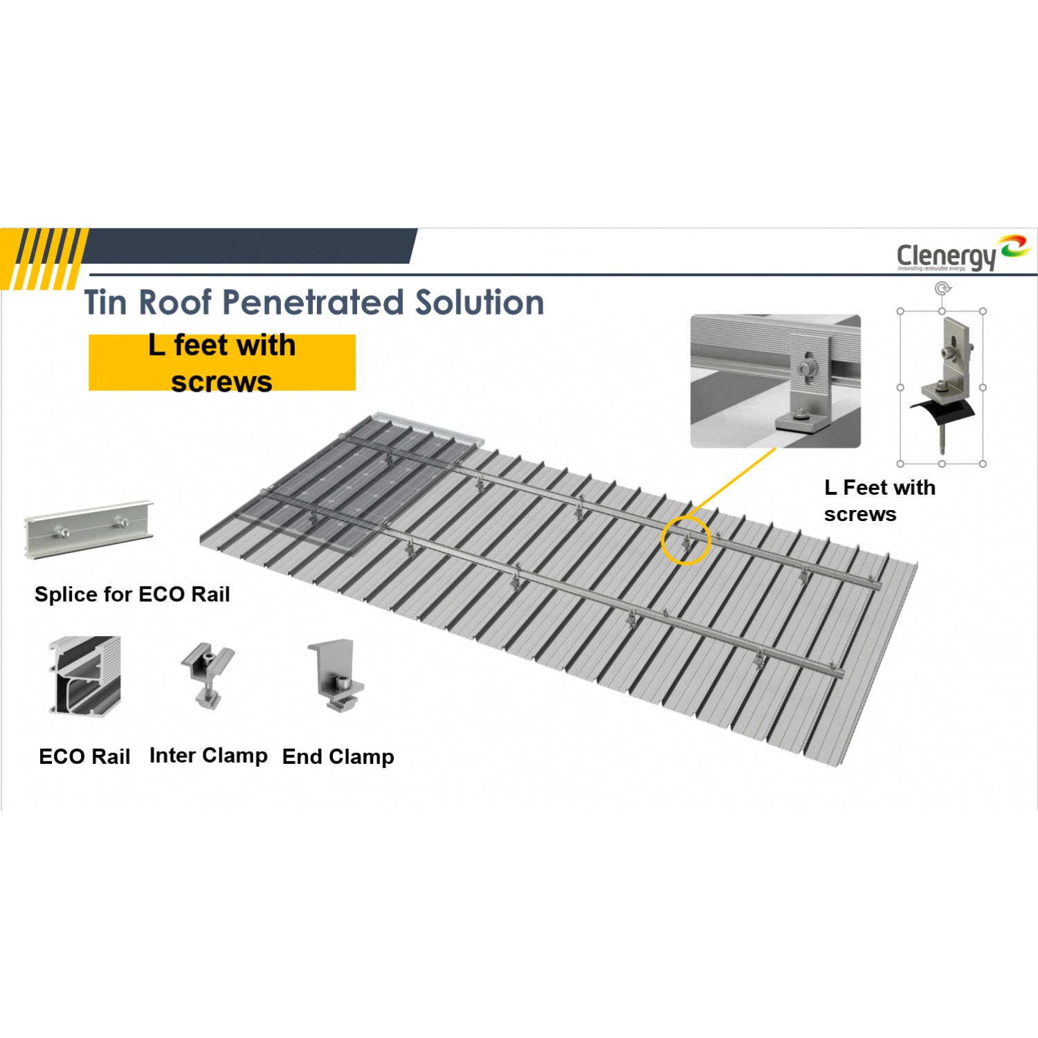 With three adjustable tilt legs, these parts can tilt panels from between 10-60 degrees. Through its innovative design, the tilt legs can cope with all common purlin distances.
