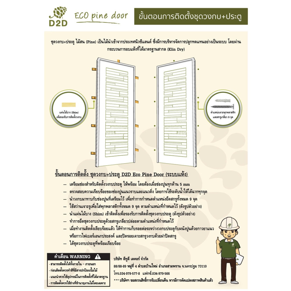 - บานประตูไม้สามารถติดตั้งกับวงกบไม้จริง หรือวงกบไม้สังเคราะห์ได้