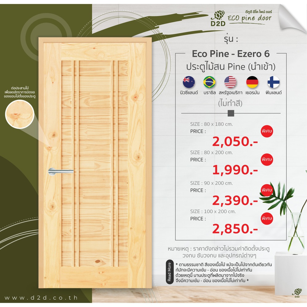 นอกจากนี้ประตู Eco Pine เป็นการใช้ไม้ที่มีการปลูกทดแทนอย่างเป็นระบบ อีกทั้งการออกแบบประตูแต่ละรุ่นนั้น เรามีแรงบันดาลใจสร้างสรรค์ชิ้นงาน เพื่อลดการสูญเสียจากไม้และทำให้เกิดประโยชน์สูงสุด