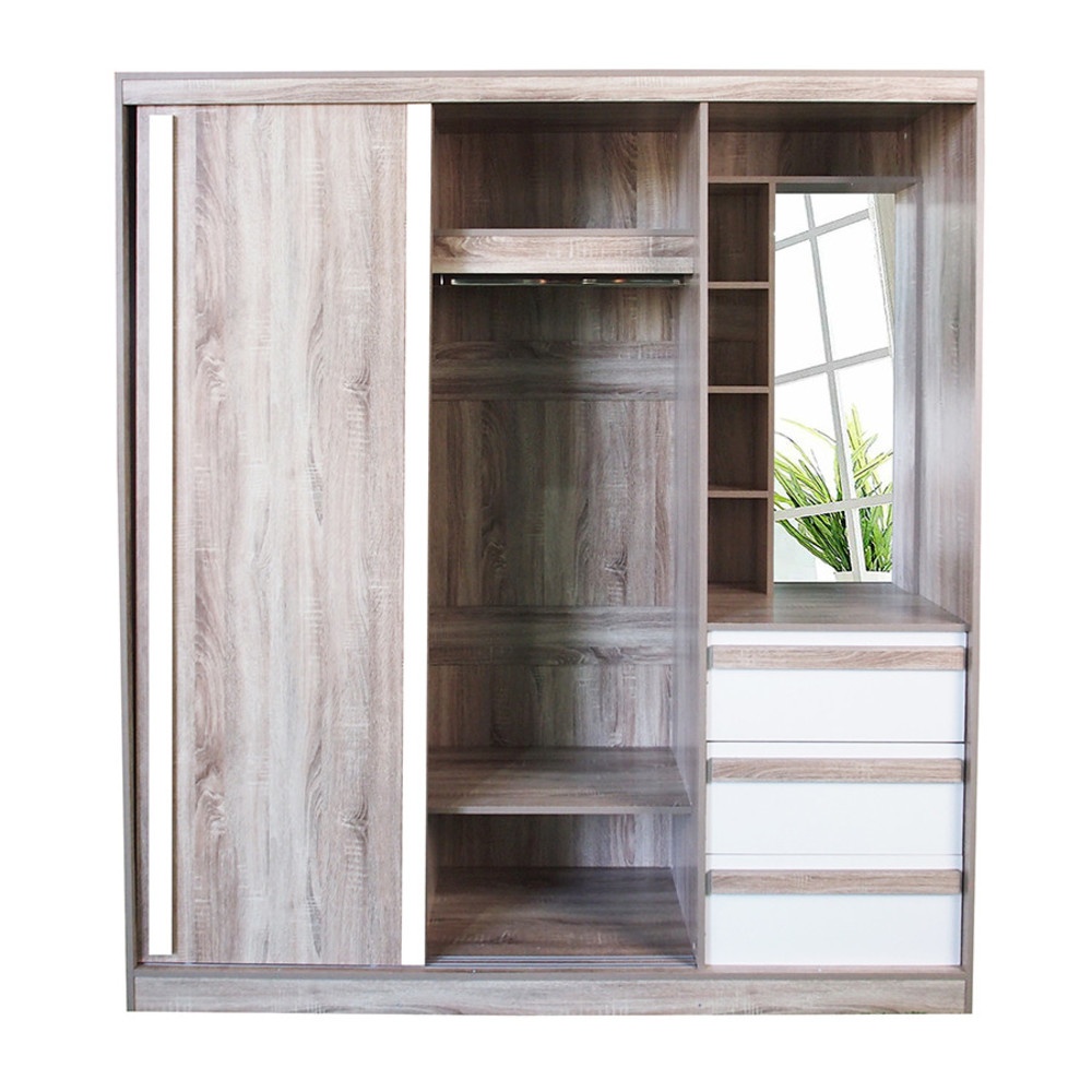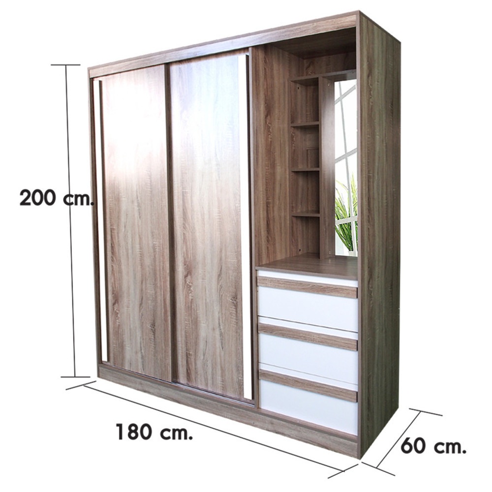 - หน้าบานสไลด์ 2 บาน ขนาดกว้างขวาง ปิดเงียบและลื่นสะดวก และพร้อมโต้ะเครื่องแป้งในตัว ซึ่งมีบานกระจกและชั้นวางของจำนวน 4 ชั้นเล็กด้านข้าง และ 1 ชั้น บนซึ่ง สะดวกและสามารถวางเครื่องสำอางรวมไปถึงของใช้ ได้อย่างเป็นระเบียบ