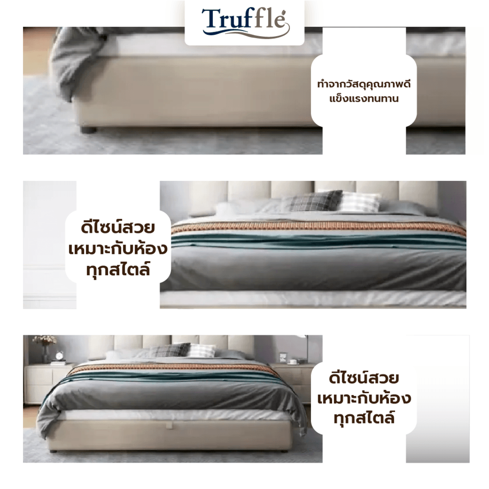 Truffle เตียงหัวเบาะ 6ฟุต รุ่น Prince สีครีม