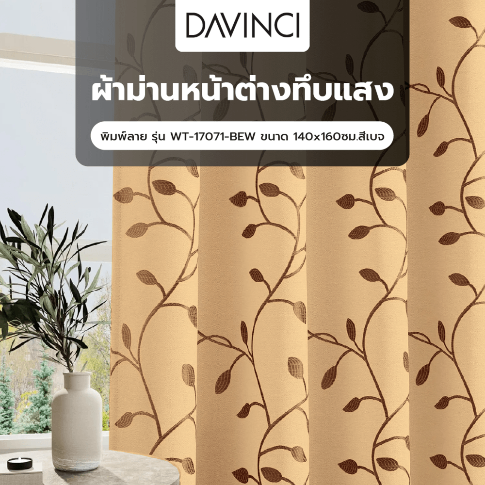 ผ้าม่านหน้าต่างทึบแสงพิมพ์ลาย รุ่น WT-17071-BEW ขนาด 140x160ซม.สีเบจ