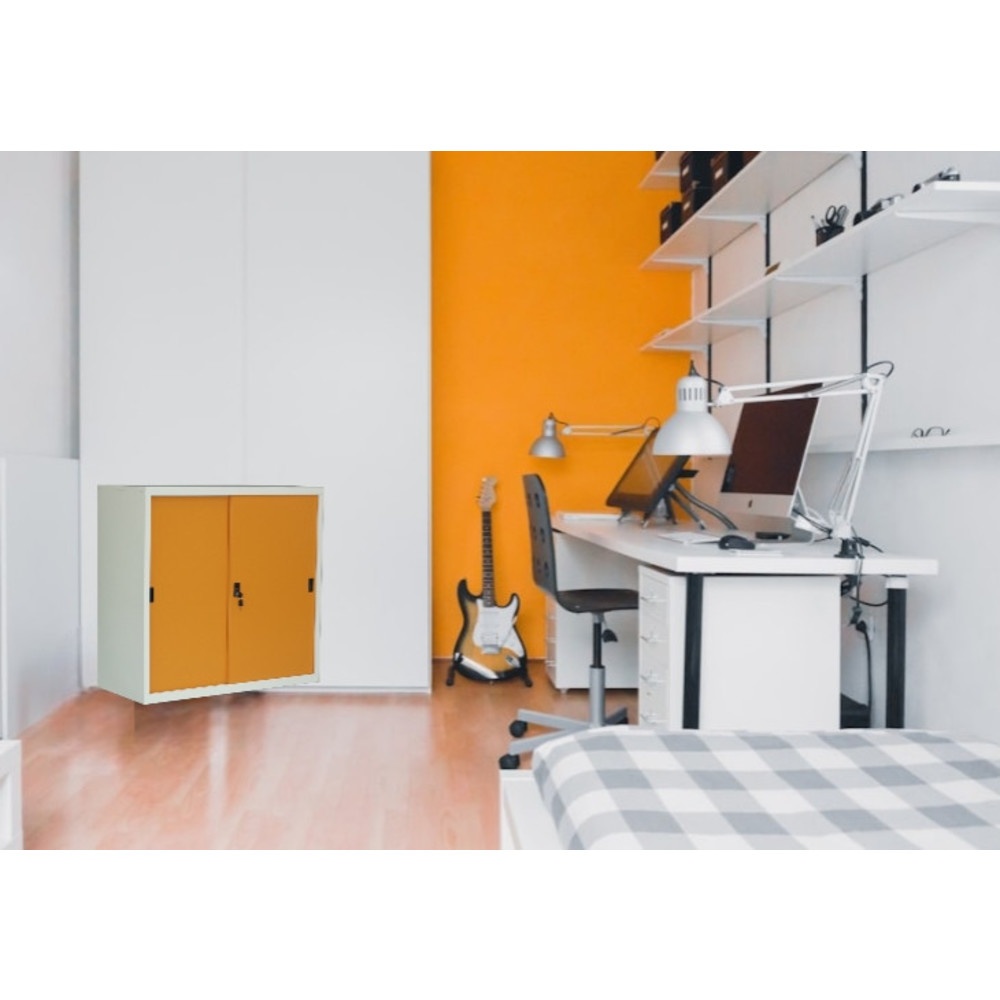 รุ่น | ATMOS ตู้เหล็กเก็บเอกสารบานเลื่อนทึบ3ฟุตสีส้ม |