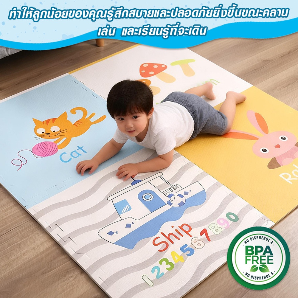 เหมาะสำหรับใช้เป็นแผ่นรองคลาน แผ่นรองนั่งเล่น หรือปูพื้นในห้องเด็กเล่น ห้องนอน ห้องนั่งเล่น และศูนย์พัฒนาเด็กเล็ก เพื่อสร้างพื้นที่กิจกรรมที่นุ่มสบาย ปลอดภัย และเต็มไปด้วยความสนุกสนาน