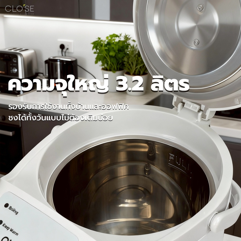 ครั้งแรกก่อนการใช้งาน ให้ต้มน้ำร้อนในครั้งแรกทิ้งก่อน โดยกดที่กดน้ำบนฝากระติกหลาย ๆ ครั้ง เพื่อให้