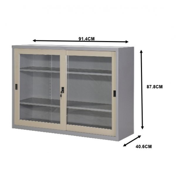 | รุ่น | ตู้เหล็กเก็บเอกสาร บานเลื่อนกระจก 3 ฟุต สีทูโทน |