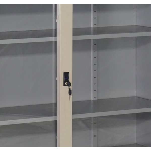 ช่วยการจัดเก็บแฟ้มเอกสารและอุปกรณ์สำนักงานได้อย่างเป็นระเบียบ และมองเห็นวัตถุภายในได้ชัดเจนด้วยบานเลื่อนกระจกใส 2 ประตู มาพร้อมกุญแจล็อกเพื่อเสริมความปลอดภัยสำหรับการจัดเก็บเอกสารที่สำคัญ