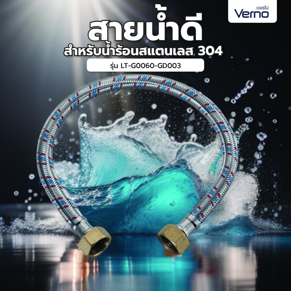 Verno สายน้ำดีสำหรับน้ำร้อนสแตนเลส 304 รุ่น LT-G0060-GD003 ยาว 60 ซม.