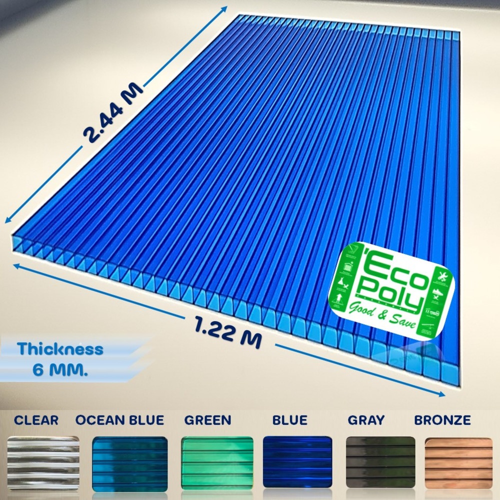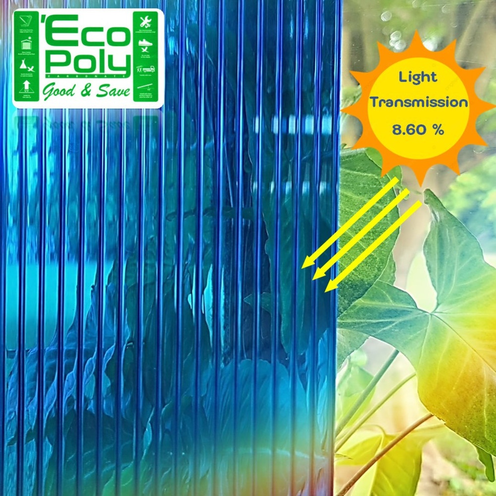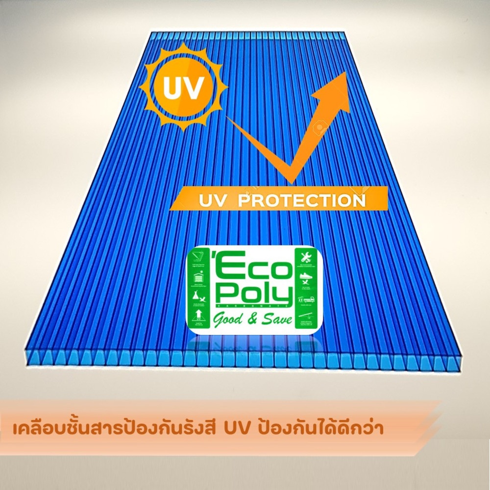 - วัสดุแผ่นมีความโปร่งแสง ผิวของแผ่นโพลีคาร์บอเนต เคลือบด้วยสารป้องกันรังสี UV ทนต่อสภาวะแวดล้อมได้ดี จึงสามารถใช้งานกลางแจ้งได้ยาวนาน