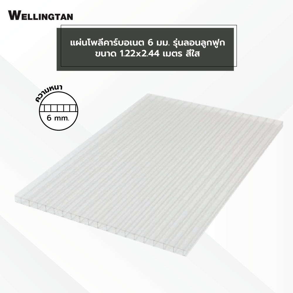 แผ่นโพลีคาร์บอเนต WELLINGTAN ขนาด 1220x2440 มม. หนา 6 มม. รุ่น Hollow (ผิวเรียบ)