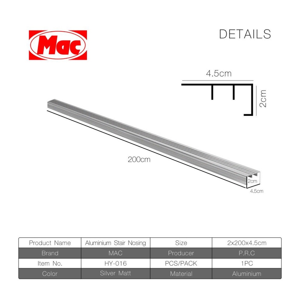 MAC จมูกบันไดอลูมิเนียม หน้ากว้าง 40 มม. ยาว 2 เมตร รุ่นHY-014 สีเงินด้าน