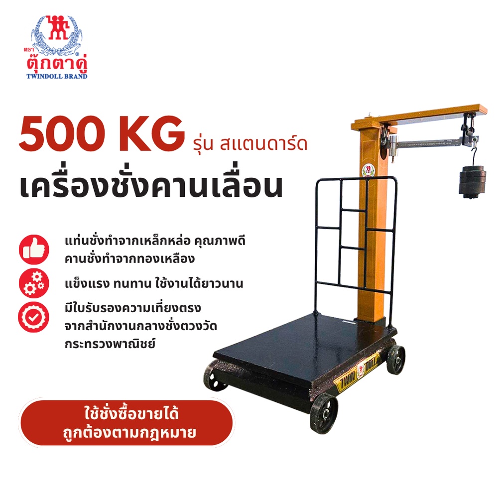 เครื่องชั่งน้ำหนักคานเลื่อน ตรา ตุ๊กตาคู่ พิกัดกำลัง 500 กิโลกรัม ความละเอียด 200 กรัม รุ่นสแตนดาร์ด ขนาด 45x60x108 ซม