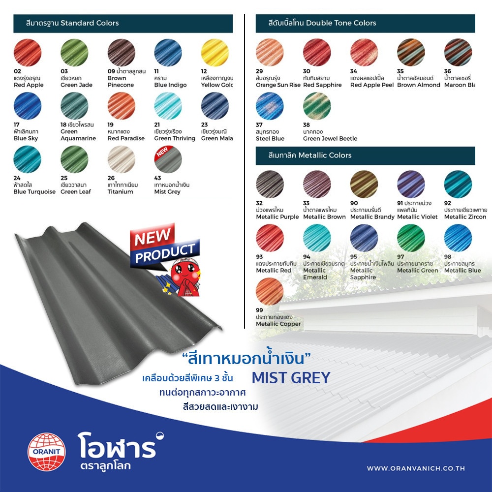 กระเบื้องสีทุกแผ่นเคลือบด้วยสีพิเศษ 3 ชั้น ให้สีสวย ทนทาน และเงางาม