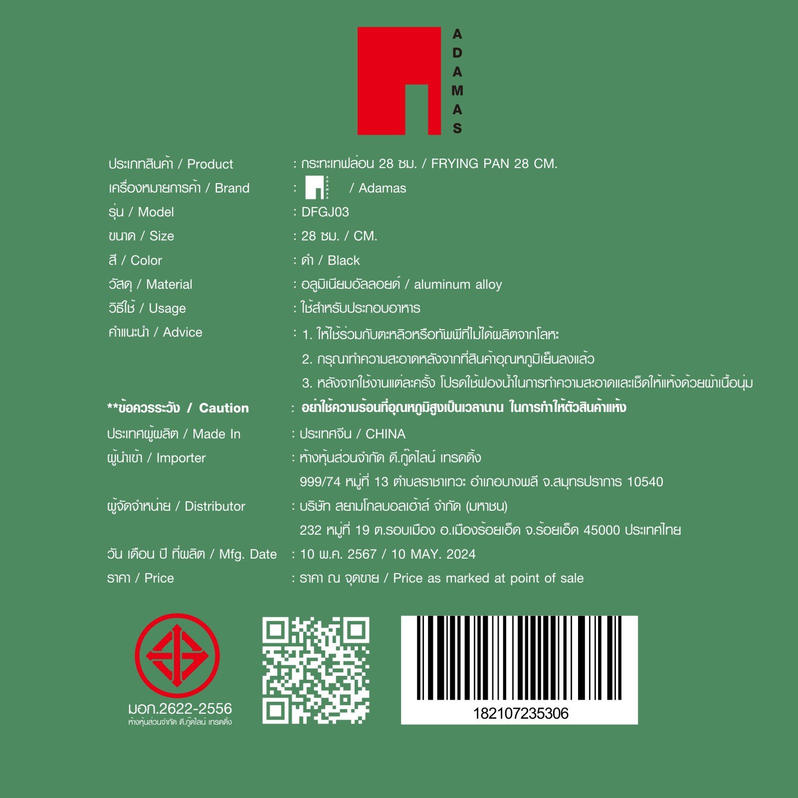 Adamas กระทะเทฟล่อน 28 ซม. รุ่น DFGJ03 สีดำ
