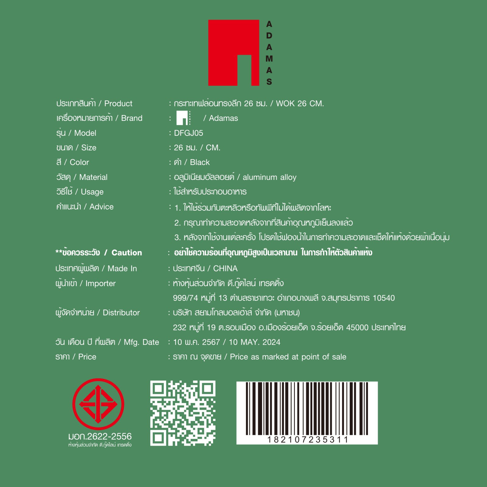 Adamas กระทะเทฟล่อนทรงลึก 26 ซม. รุ่น DFGJ05 สีดำ