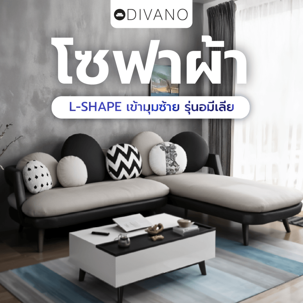 โซฟาห้องนั่งเล่น รูปทรงตัว L เข้ามุมซ้าย ช่วยประหยัดพื้นที่ใช้สอย