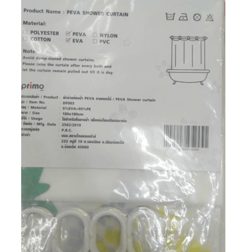 ผ้าม่านห้องน้ำ ลายดอกไม้ ขนาด180x180 cm วัสดุ5%EVA+95%PE เป็นผ้าม่านกึ่งทึบแสง ทำให้มองไม่เห็นขณะอาบน้ำ แต่ยังคงให้แสงสว่างส่องเข้าถึงกันได้ ทำให้ห้องน้ำไม่มืด จนแลดูอึดอัด