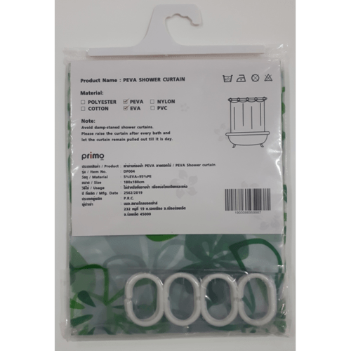 ผ้าม่านห้องน้ำ PEVA ลายดอกไม้ รุ่น DF004 ขนาด 180*180 เซนติเมตร ใช้วัสดุ PE95% EVA5% เป็นผ้าม่านกึ่งทึบแสง ทำให้มองไม่เห็นขณะอาบน้ำ