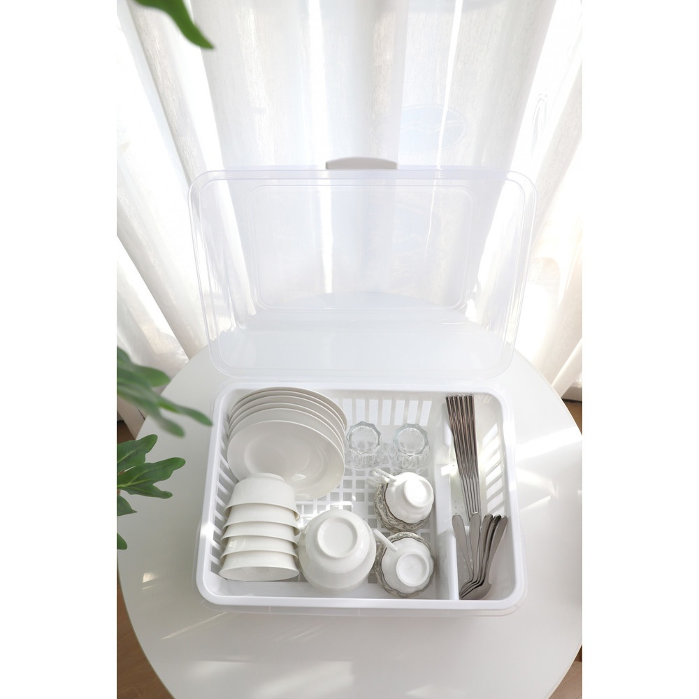ที่คว่ำจานพร้อมฝาปิด ทำจากพลาสติกคุณภาพดี ปลอดภัยต่อสุขภาพ แข็งแรง ทนทาน สำหรับคว่ำจานและเพื่อให้เป็นระเบียบเรียบร้อย หยิบใช้งานสะดวก มีฝาปิดเพื่อกันฝุ่นละออง ตะกร้าด้านในสามารถถอดออกเพื่อนำมาล้างทำความสะอาดได้ มีถาดรองน้ำด้านล่างสำหรับระบายน้ำหยดเพื่อความสะอาด