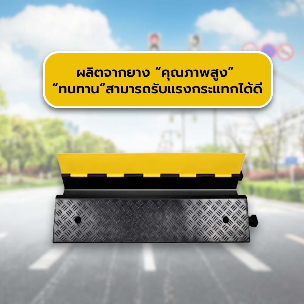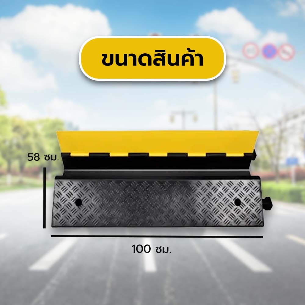 ยางป้องกันสายไฟ 1 ช่อง 100x58x12Cm. รุ่น PQS-OBC101 สีดำ-หลือง เหมาะติดตั้งในหมู่บ้าน ทางแยก ปากซอย หรือถนน เพื่อชะลอความเร็วของยานพาหนะ