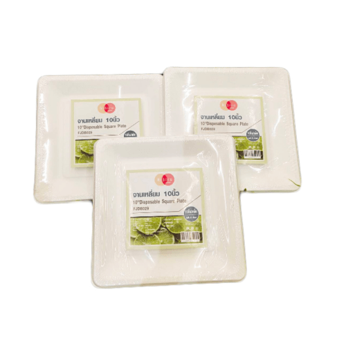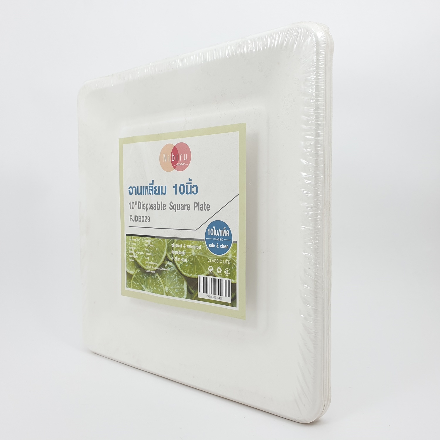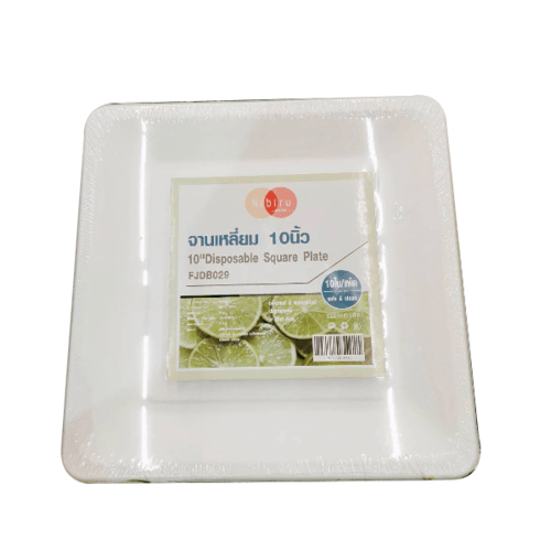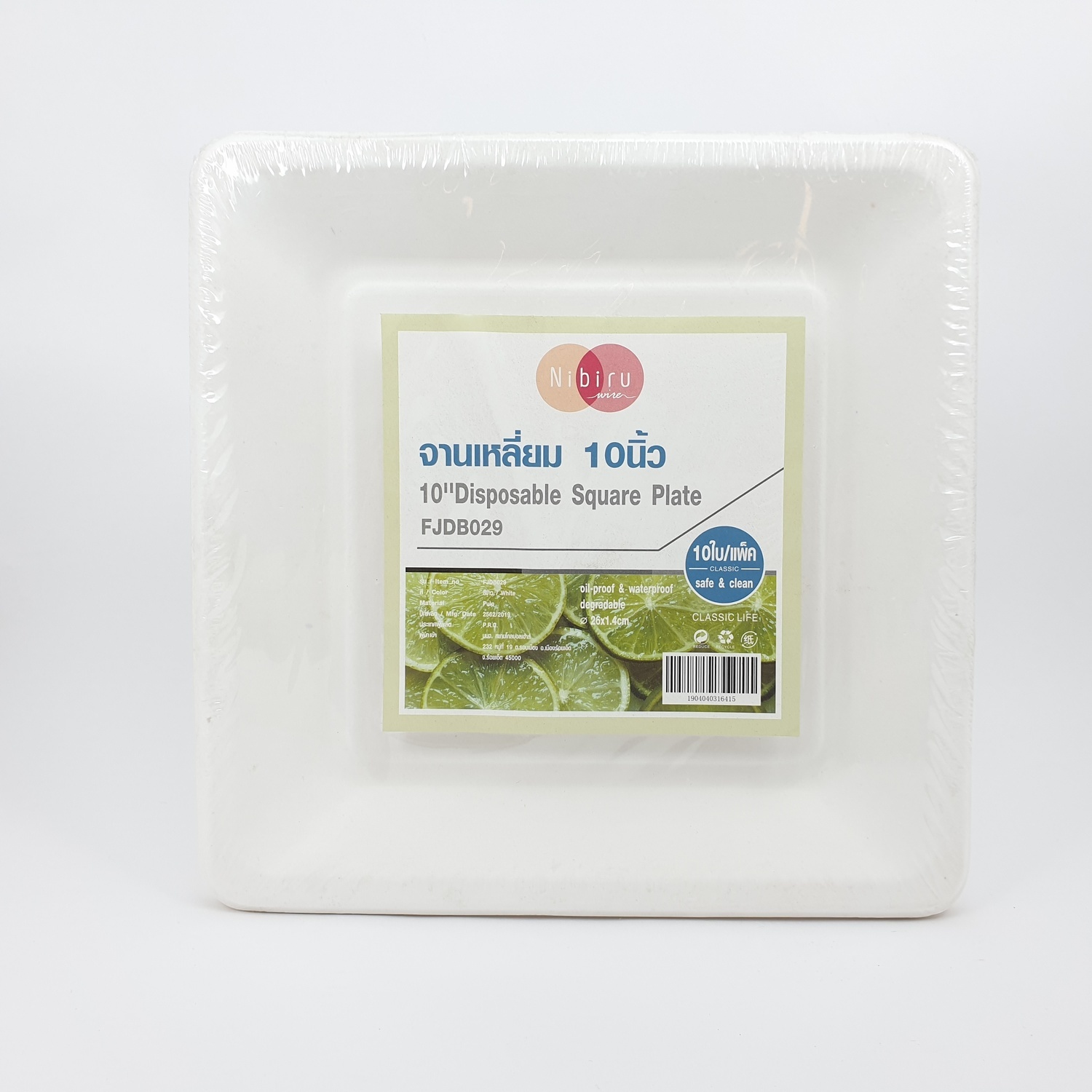 จาน เป็น ทรงสี่เหลี่ยม ขนาด 10นิ้ว มีขนาดเส้นผ่าศูนย์กลาง 26X1.4 cm.