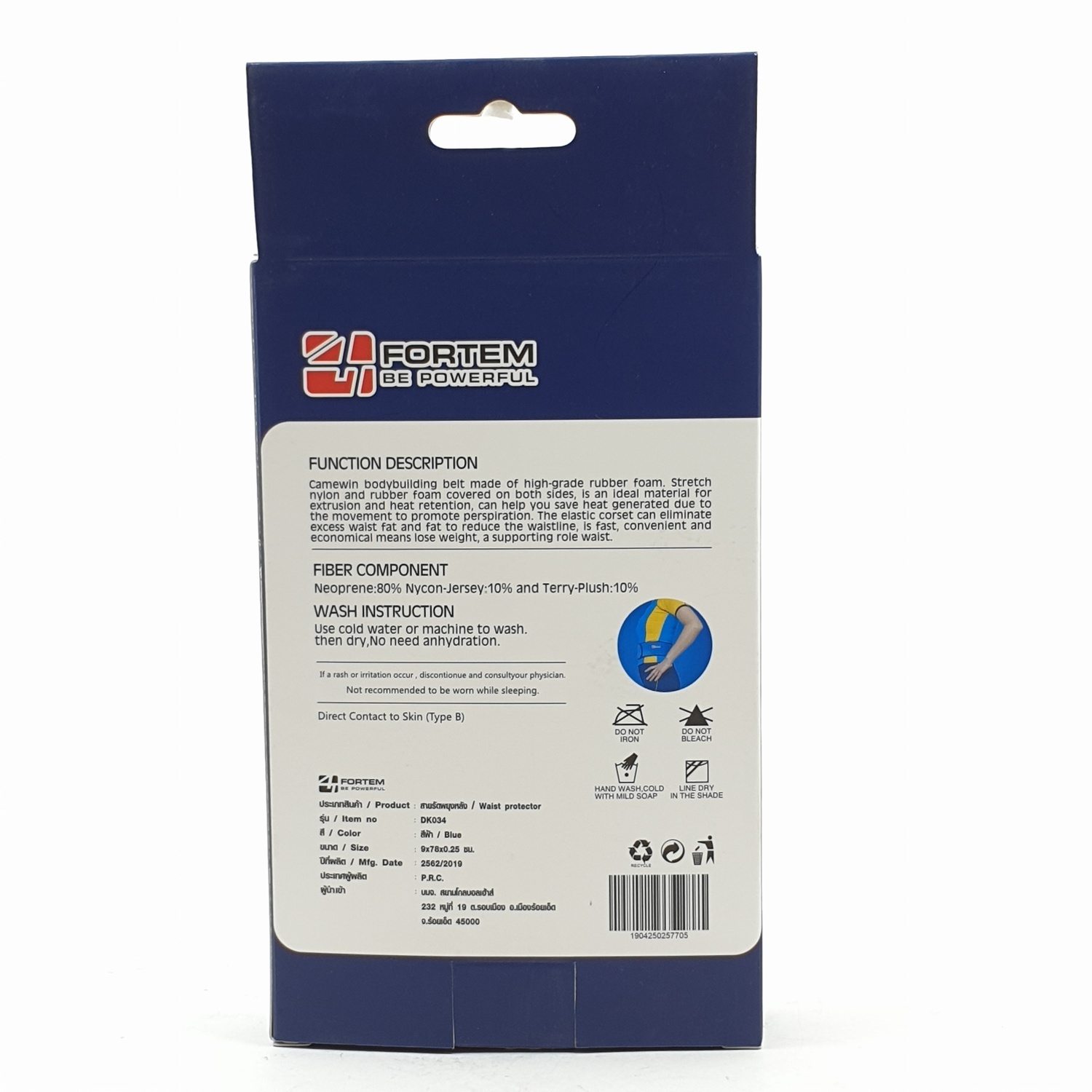 สายรัดพยุงหลัง DK034 ขนาด 9x78x0.25 ซม.สีน้ำเงิน.FORTEM