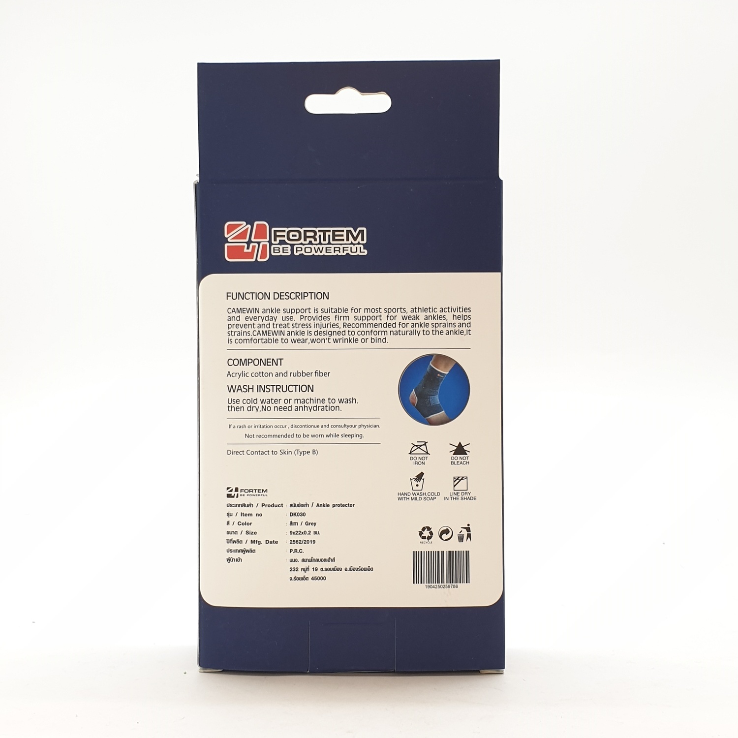 สนับข้อเท้า DK030 ขนาด 9x22x0.20 ซม.บรรจุ 2ชิ้น/แพ็ค สีเทา.FORTEM
