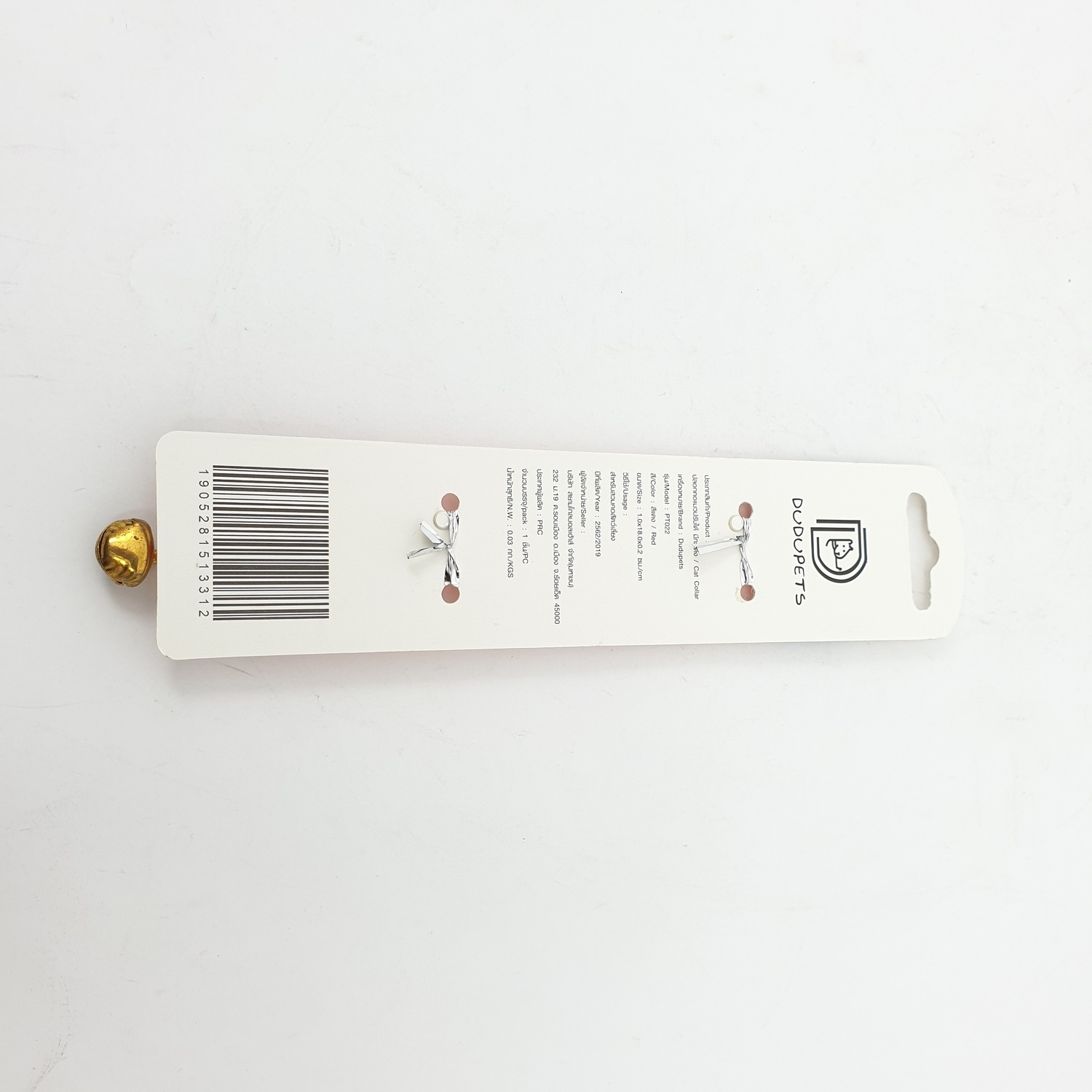 ปลอกคอแมวแบบปรับได้ มีเบลล์ รุ่น PT022 ขนาด1.0X18X0.2cm สีแดง DUDUPETS