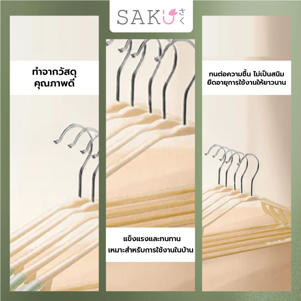 ไม้แขวนเสื้อพลาสติกกันลื่น รุ่น AN03 สีเขียว บรรจุ 10ชิ้น/แพ็ค SAKU