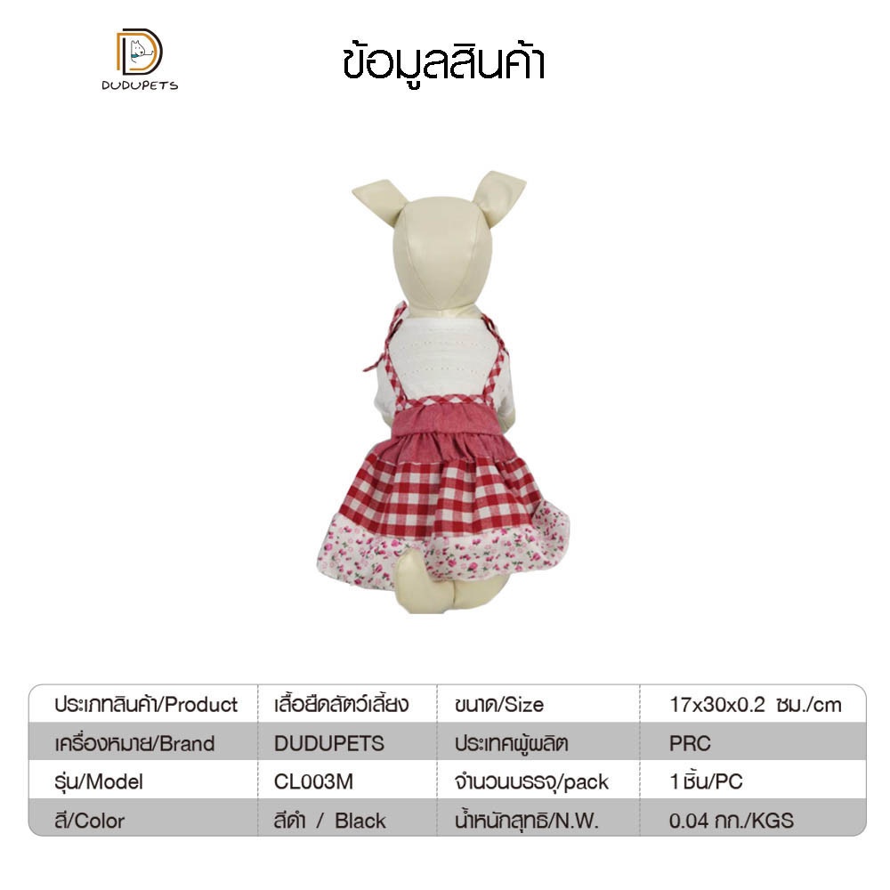 ชุดกระโปรงสัตว์เลี้ยง รุ่น CL043M ไซส์M ขนาด12นิ้ว สีชมพู DUDUPETS