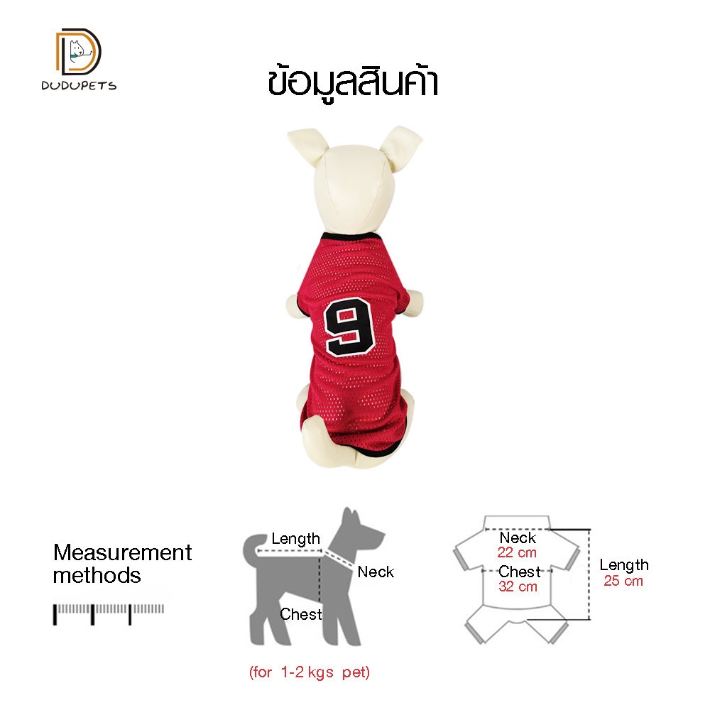 1เสื้อยืดสัตว์เลี้ยง รุ่นCL001S ไซส์S ขนาด 10นิ้ว สีแดง