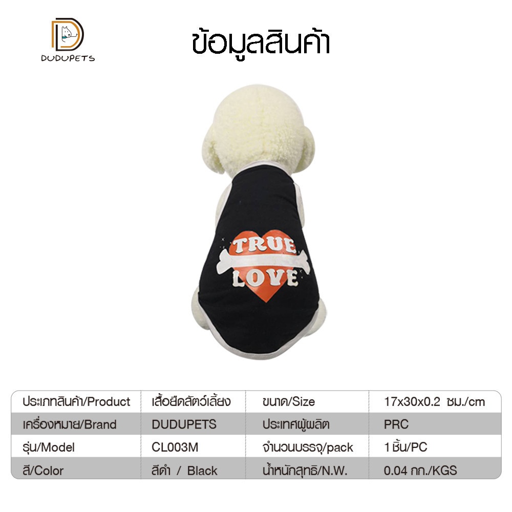 เสื้อยืดสัตว์เลี้ยง รุ่น CL003M ไซส์M ขนาด 12นิ้ว สีดำ DUDUPETS