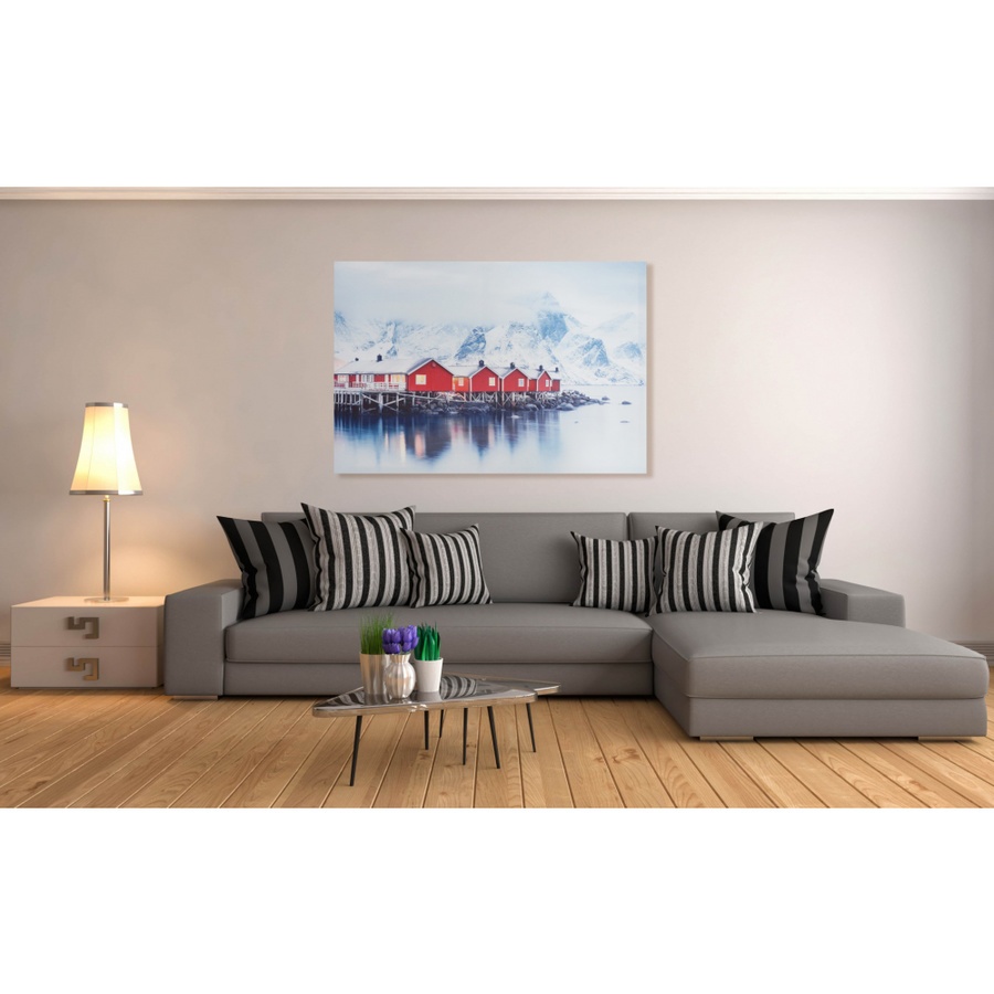 รูปภาพพิมพ์ผ้าใบ View-Forest C7050-17 ขนาด 70x50 ซม. (ก.xส.) NICE (บ้านสีแดงใกล้ภูเขาน้ำแข็ง)