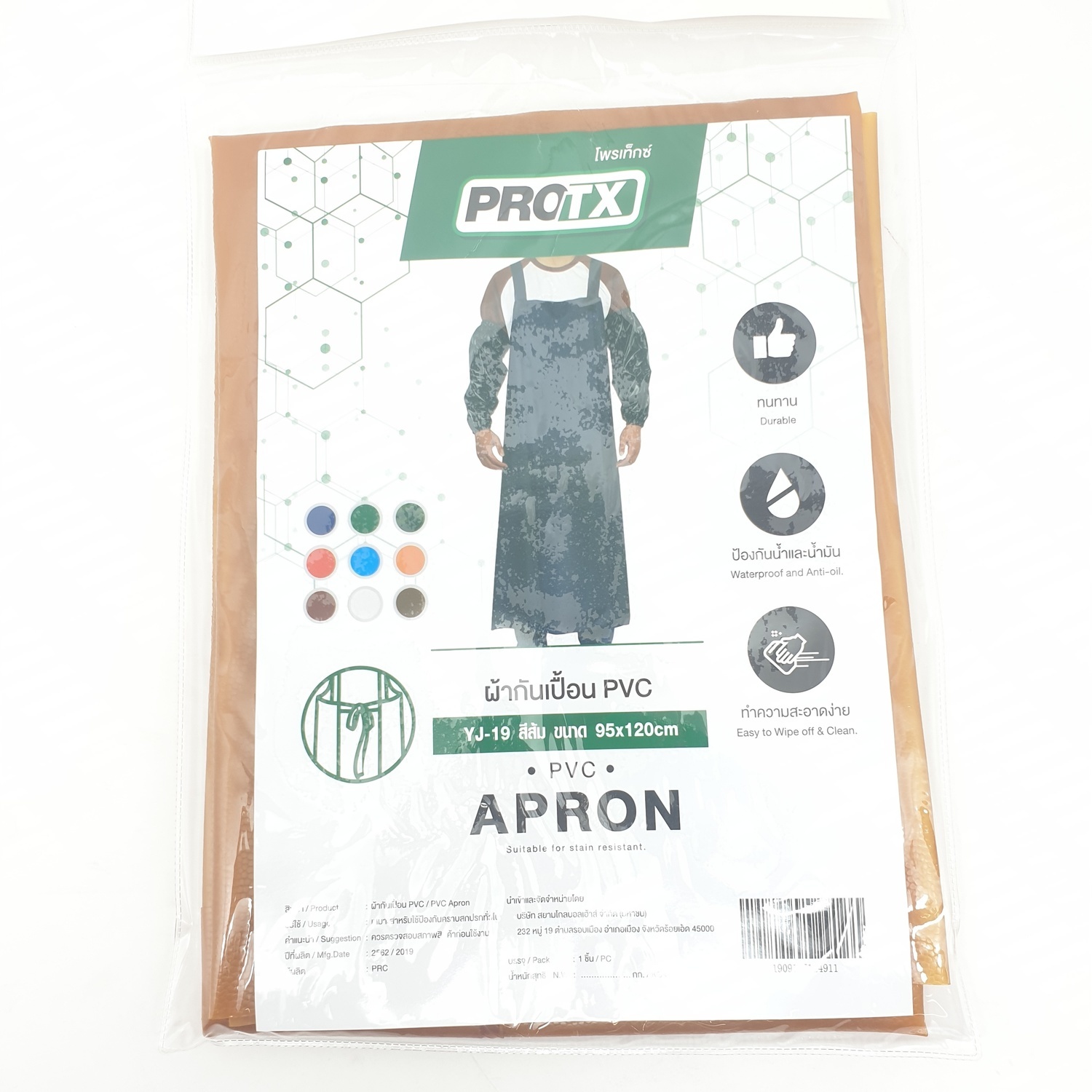 PROTX ผ้ากันเปื้อนPVC 95x120 ซม. YJ-19 สีส้ม