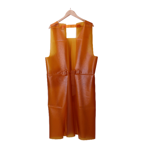 สวมใส่สบาย ไม่อึดอัด และมีความคล่องตัว สามารถเช็ดล้างทำความสะอาดได้ง่าย ผ้ากันเปื้อน พร้อมกระเป๋าด้านข้าง2ด้าน แบบสวมไหล่ มัดด้านหลัง ขนาด 95*120ซม. สีส้ม เหมาะสำหรับสวมใส่งานเกี่ยวกับงานประมง หรืองานปั้นเกาะสลักหิน