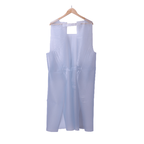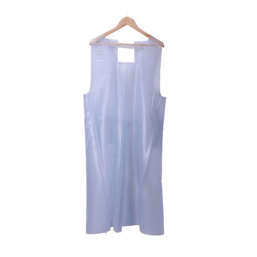 ผ้ากันเปื้อน พร้อมกระเป๋าด้านข้าง2ด้าน แบบสวมไหล่ มัดด้านหลัง ขนาด 95*120ซม. สีขาวใส เหมาะสำหรับสวมใส่งานเกี่ยวกับงานประมง หรืองานปั้นเกาะสลักหิน